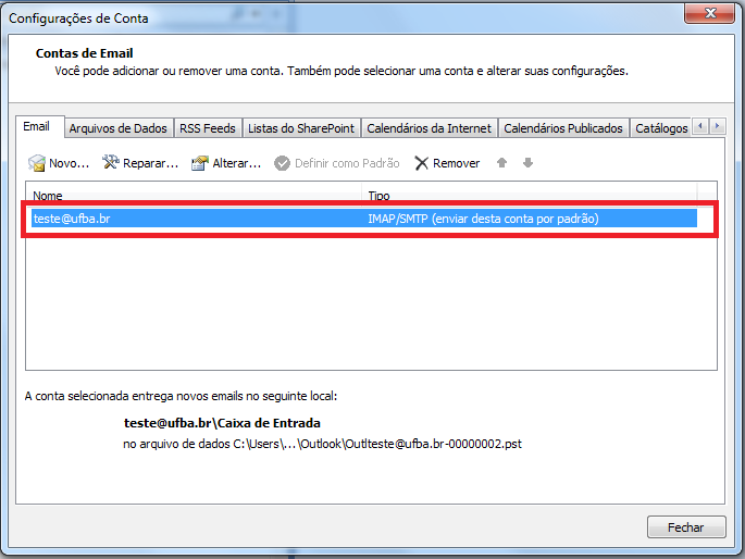 Servidor de entrada de emails: imaps.ufba.br (IMAP) ou pop3s.ufba.br