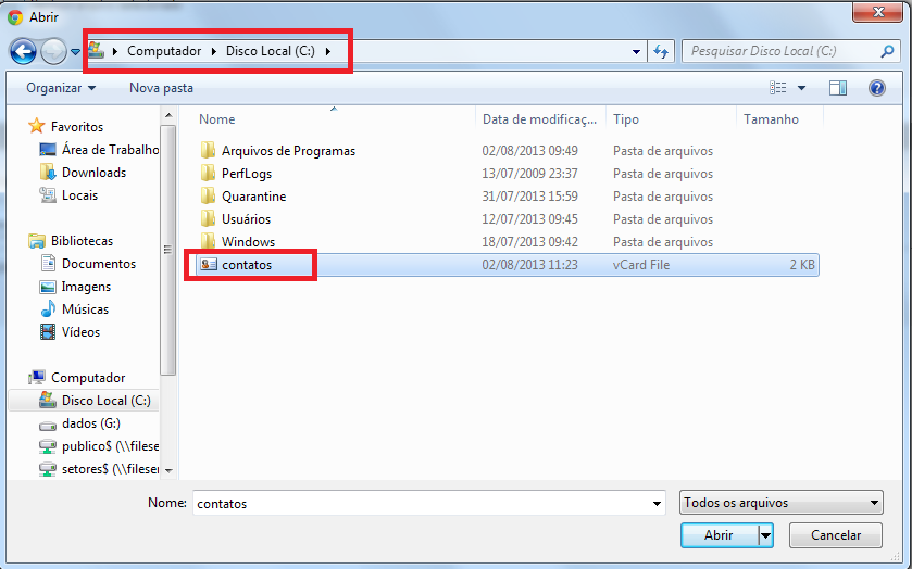 Acessa o diretório onde foi salvo o arquivo, seleciona o arquivo e clica no botão Abrir