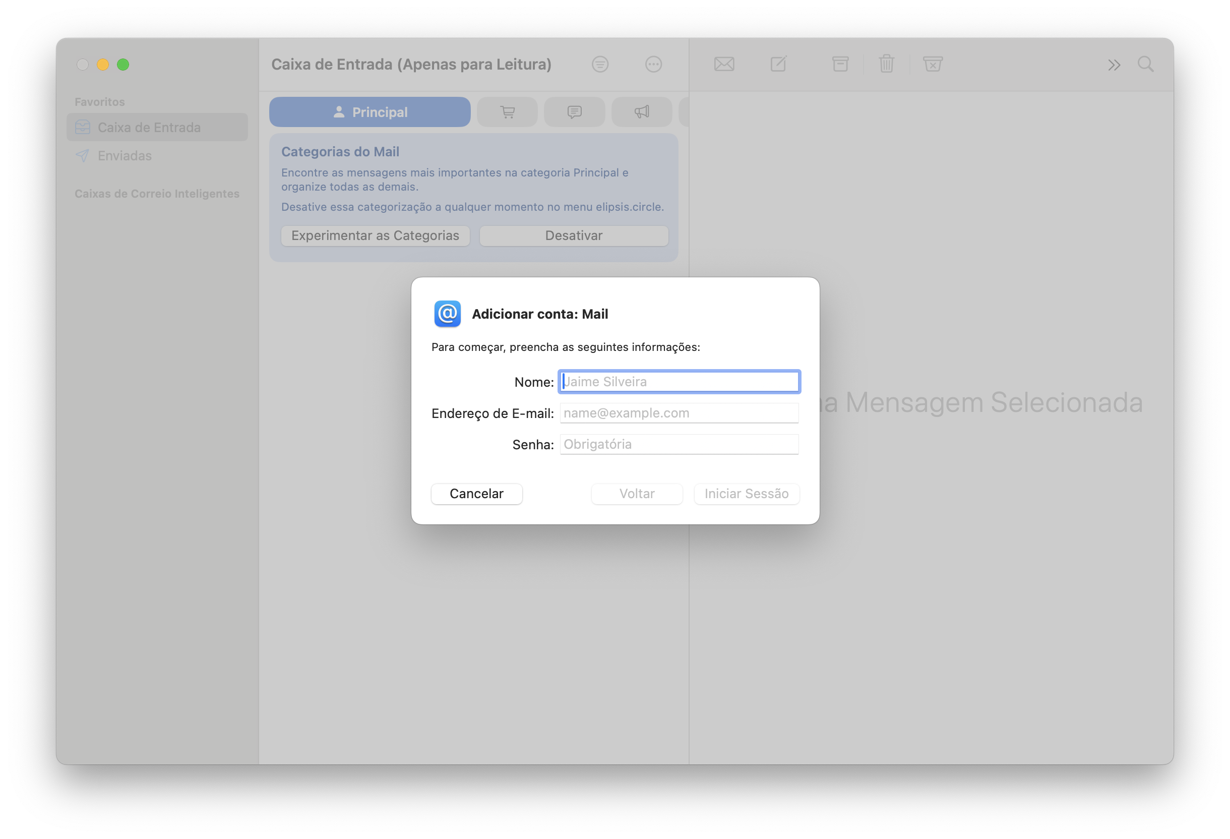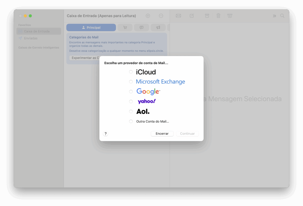Se solicitado, escolha quais aplicativos você deseja usar com esta conta (Mail, Notas, etc.). Certifique-se de que Mail esteja selecionado e clique em OK.