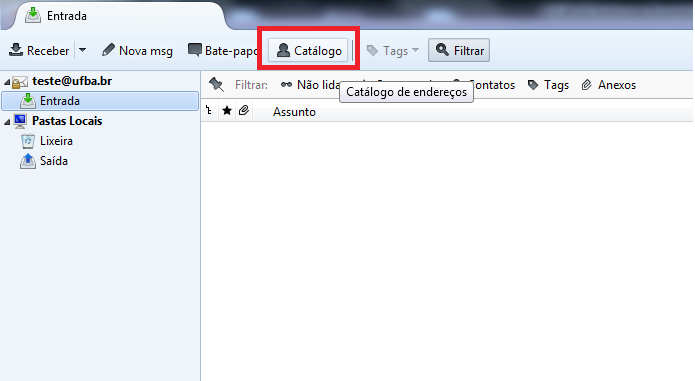 No Thunderbird clique em Catálogo