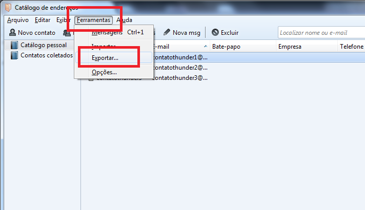 Exportando dados do Thunderbird