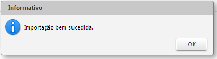 Aparecerá uma mensagem informando que a importação foi realizada com êxito